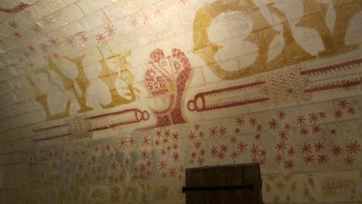 We find cells here. And in the earth depths, a former tuffeau quarry; tuffeau is a French white stone from Touraine (the châteaux de la Loire are made of this).