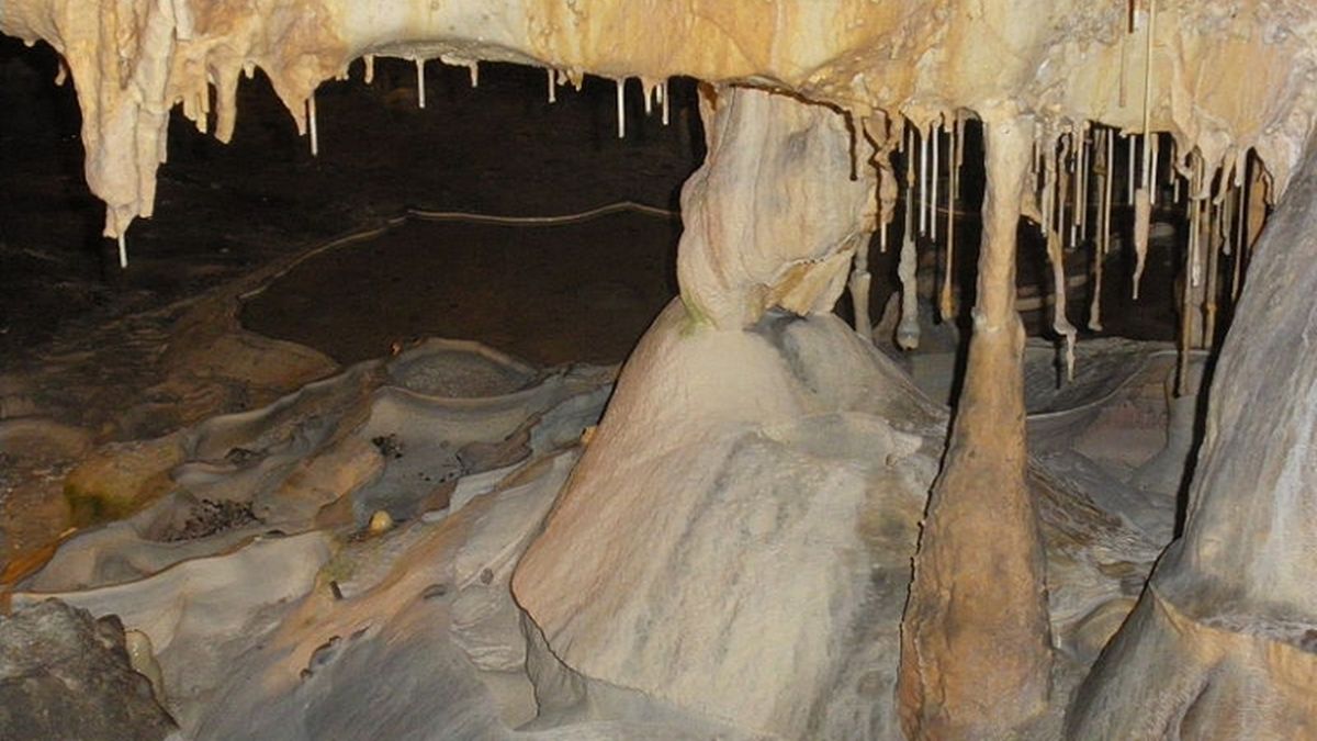 It’s a limestone massif from the Cretaceous. First they found the ″Devil’s wall″, a narrow passage about 300 metres long… in fact, this gallery was dug by an ancient underground river!