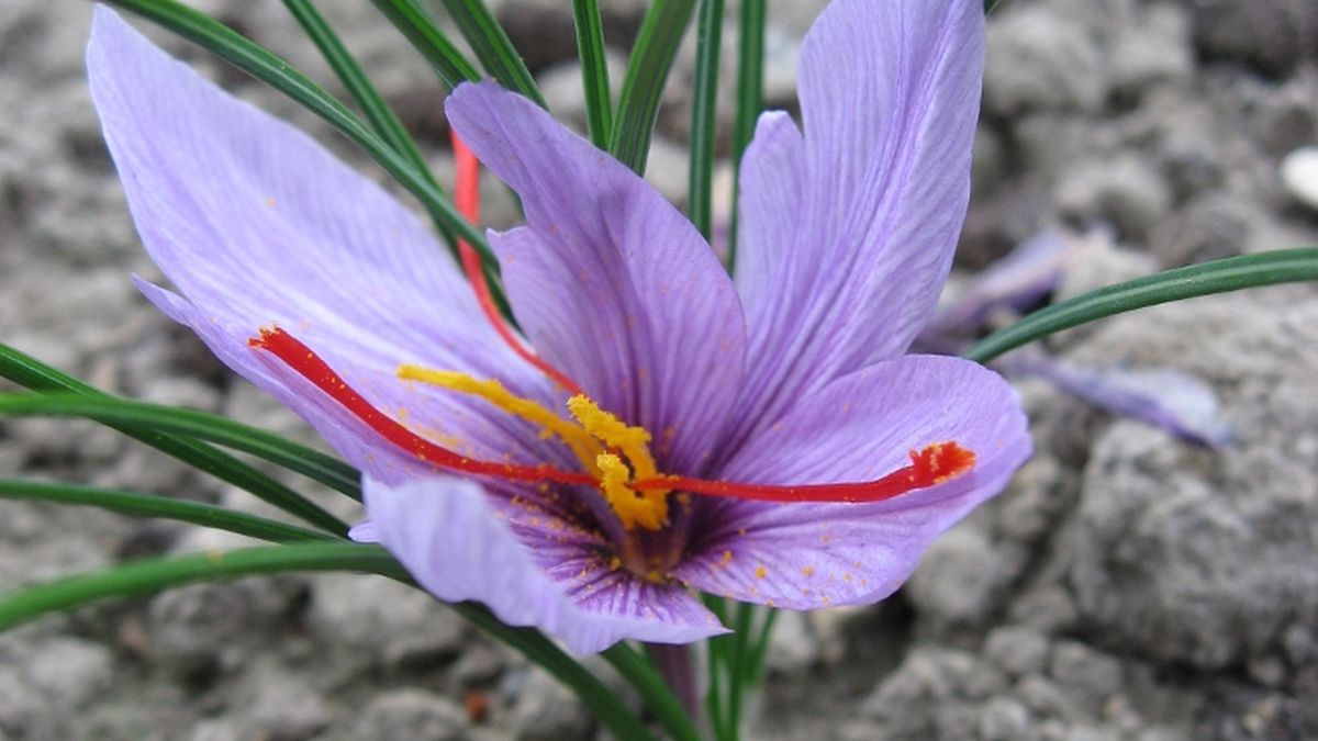 The saffron is a bulb plant, with a nice violet flower full of stigmas, kind of thin red filaments: the only workable part of the flower, which gives the saffron spice!