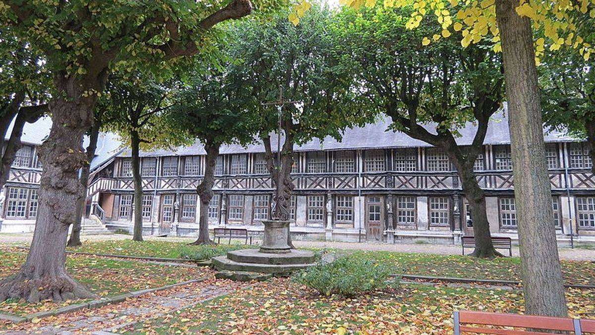 The cloister | ©Giogo / CC-BY-SABlack Plague devastated Europe in the 16th century. That was why in 1432, Nicolas Roussel, vicar of Saint-Maclou, gave a house and a garden in order to extend the cemetery.