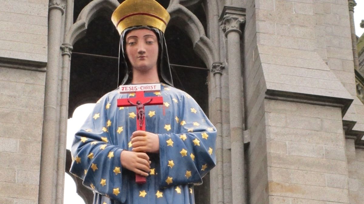 On the parvis, we can see a statue of Mary, dressed as children described her.