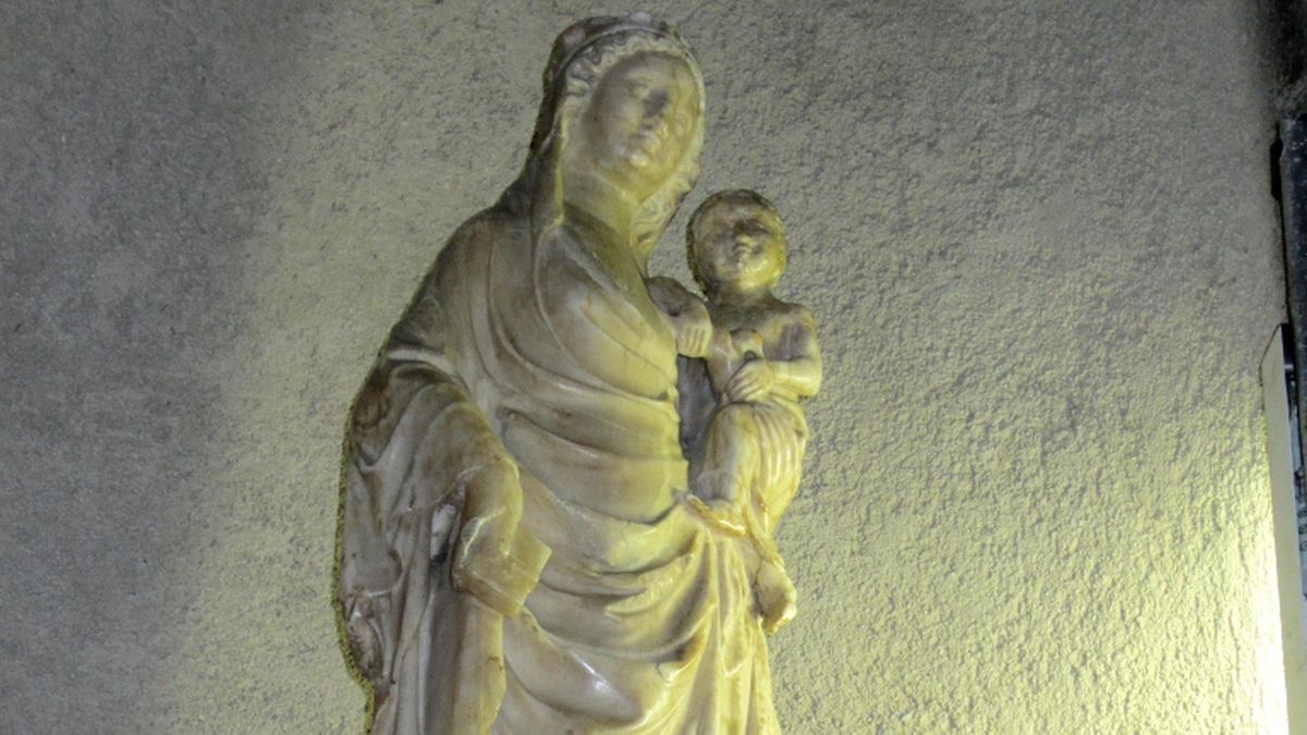 But the real treasure is in a little niche… this Virgin Mary statue, Our-Lady-of-the-Holy-Trinity (Notre-Dame-de-la-Trinité in French)!