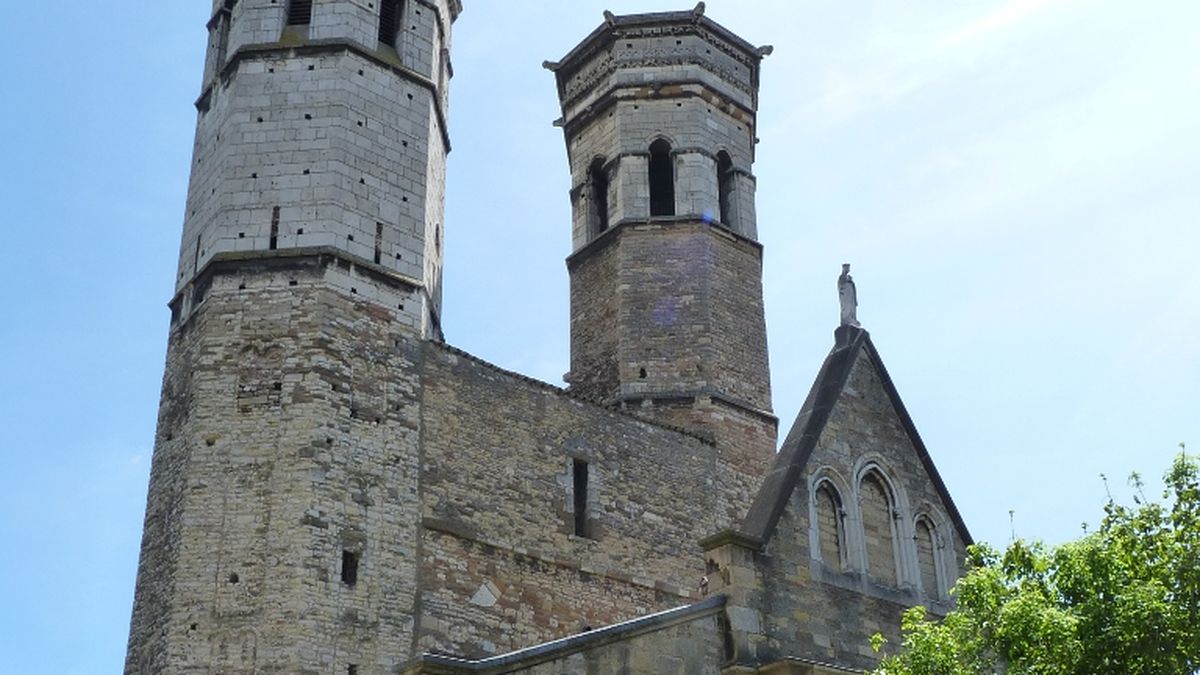 This is the vestige of the old cathedral St-Vincent, destroyed during the French Revolution: the porch, two octagonal towers and a bay.