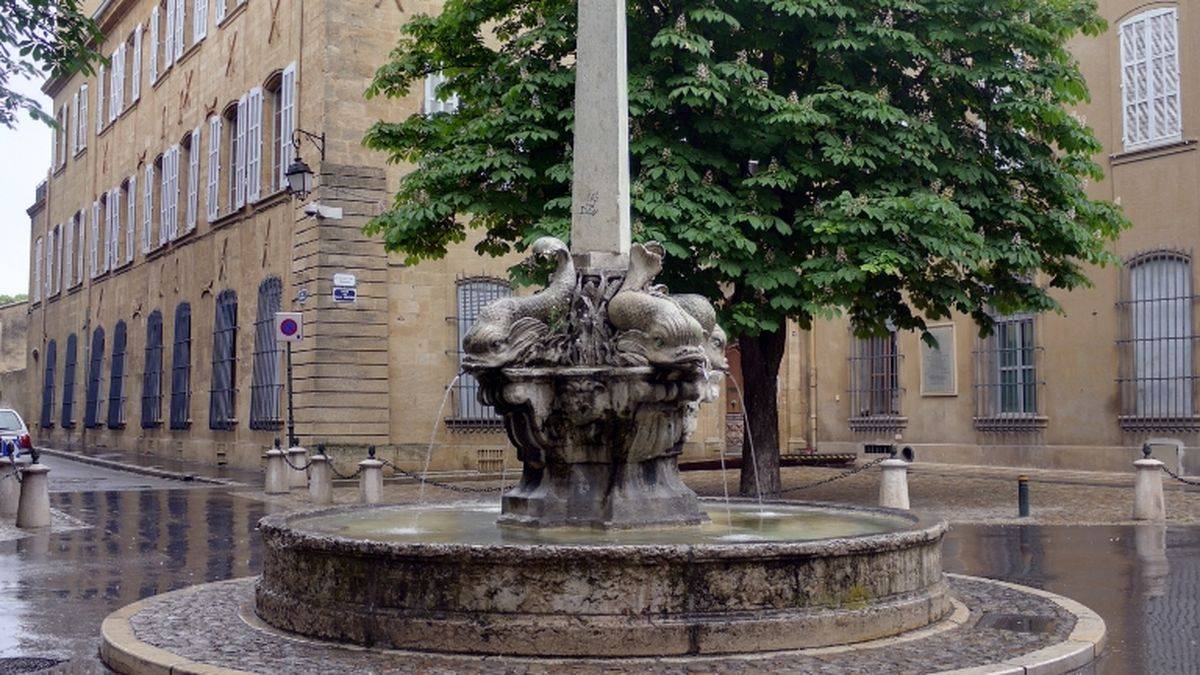 Place des Quatre-Dauphins ("Four dolphins' square") dates back to 1667, laid out, with Mazarin district, by bishop of Aix Michel Mazarin.